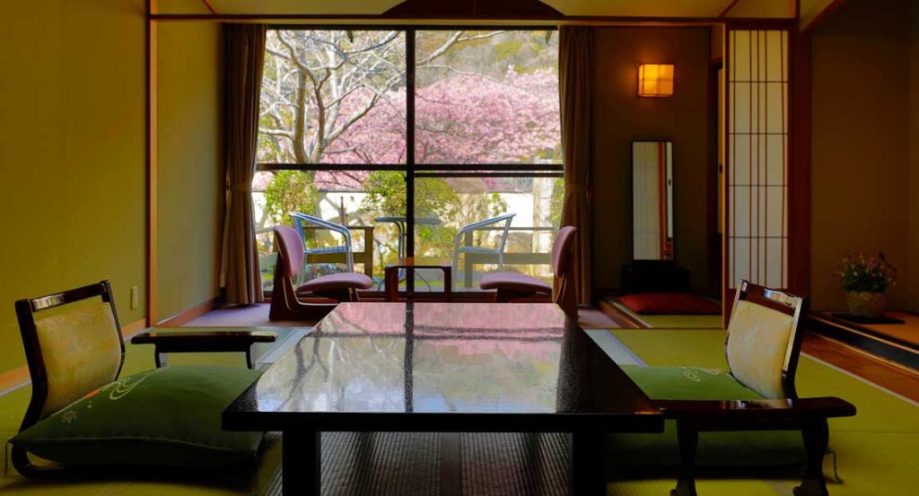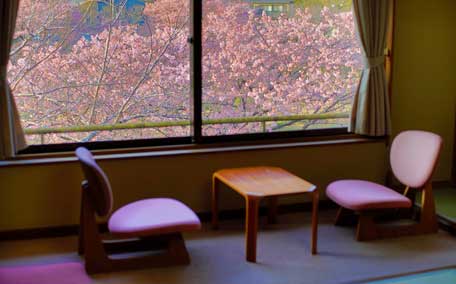 桜まつり期間中などは、青野川沿いの河津桜を客室から眺める事が出来ます。