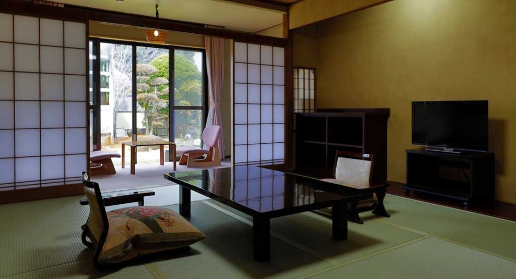 新館和室12畳バストイレ付き少し広めの12畳タイプ。ゆったりと和のくつろぎをご満喫いただけます。