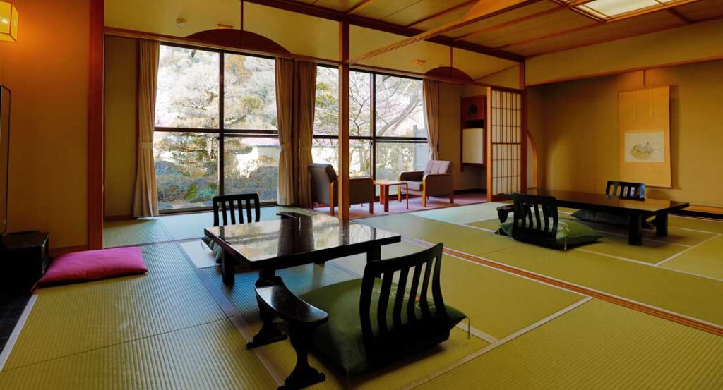 和室12畳+源泉かけ流し100%の露天風呂付き敷地内の源泉をお部屋で独り占め。