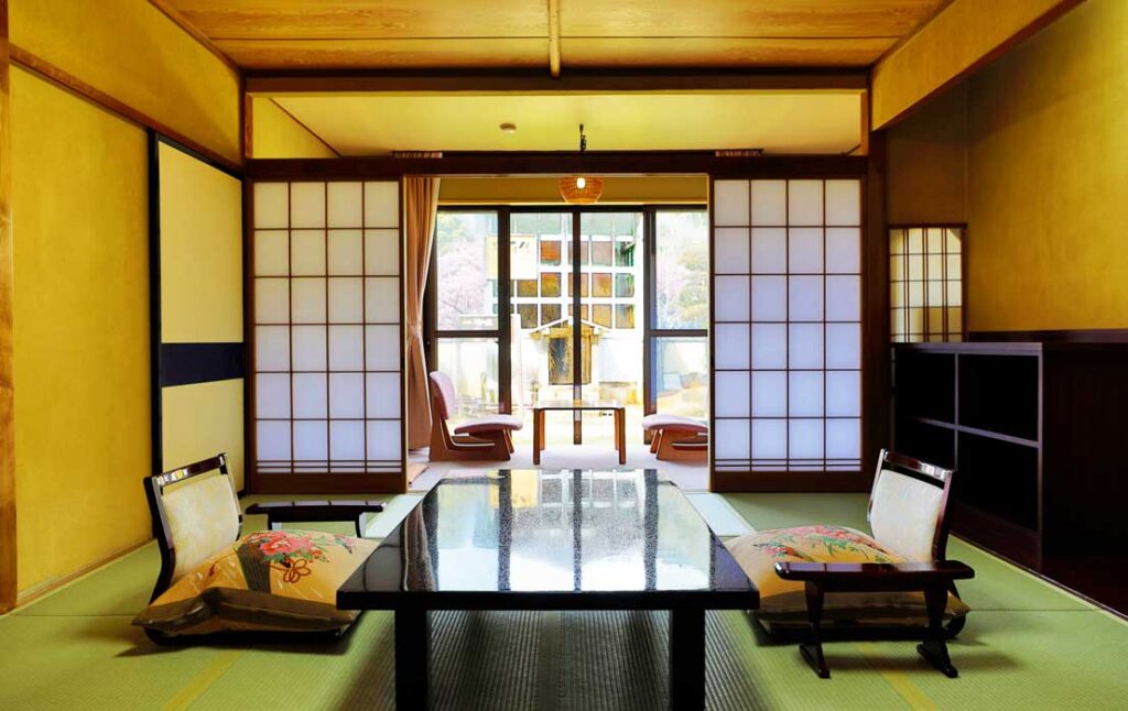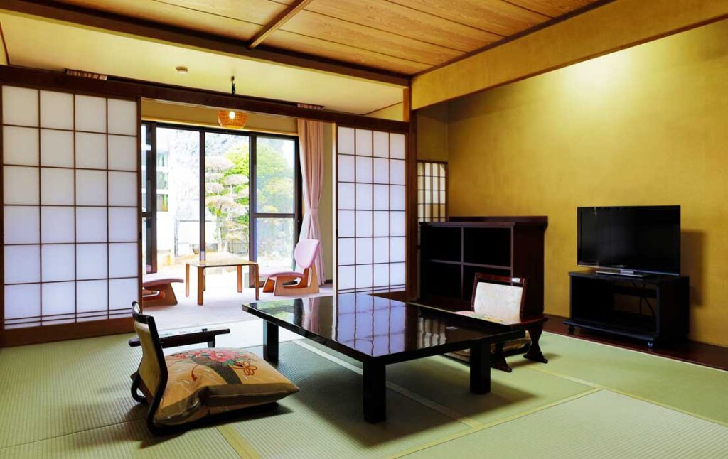 新館和室12畳バストイレ付き少し広めの12畳タイプ。